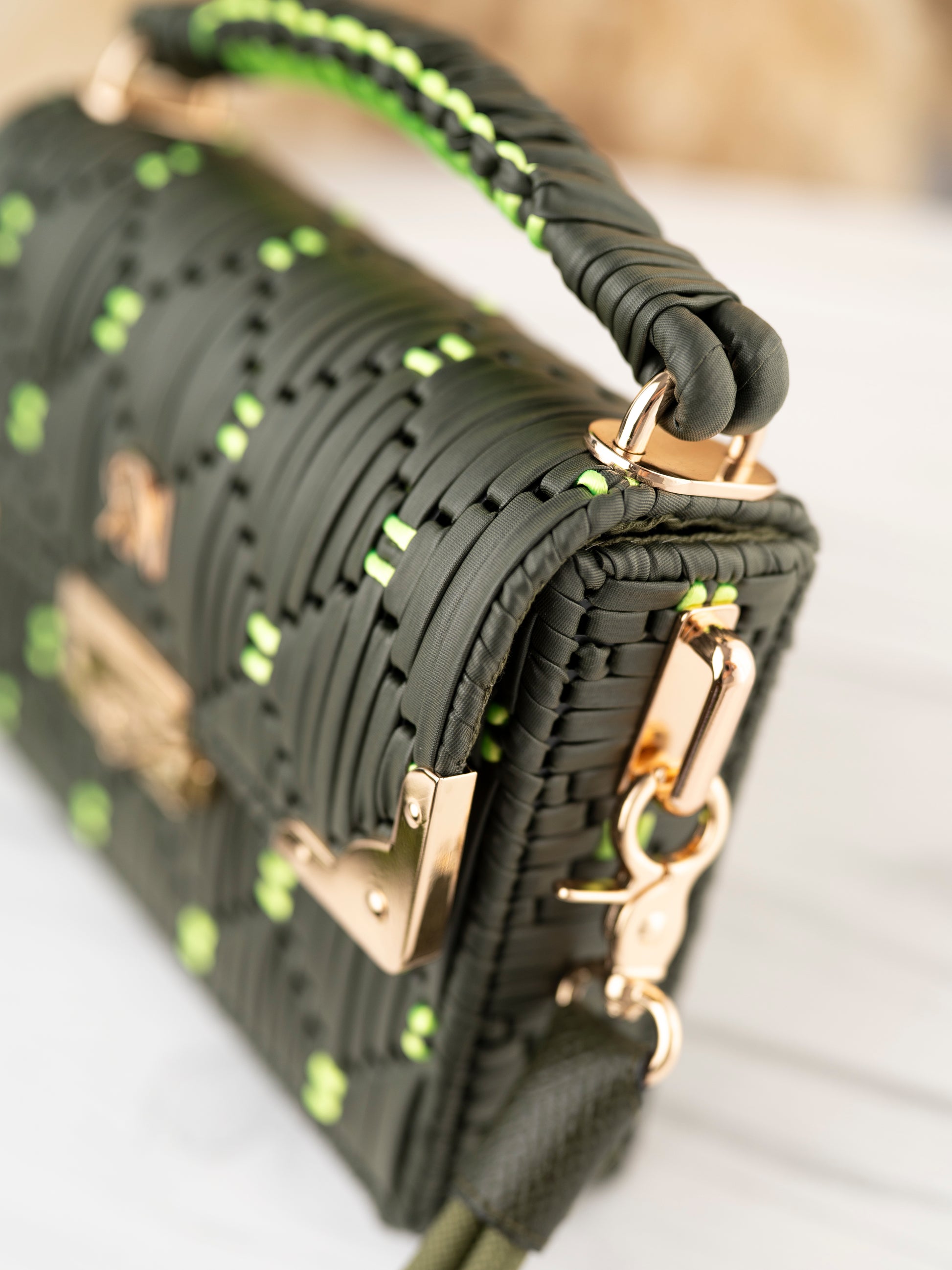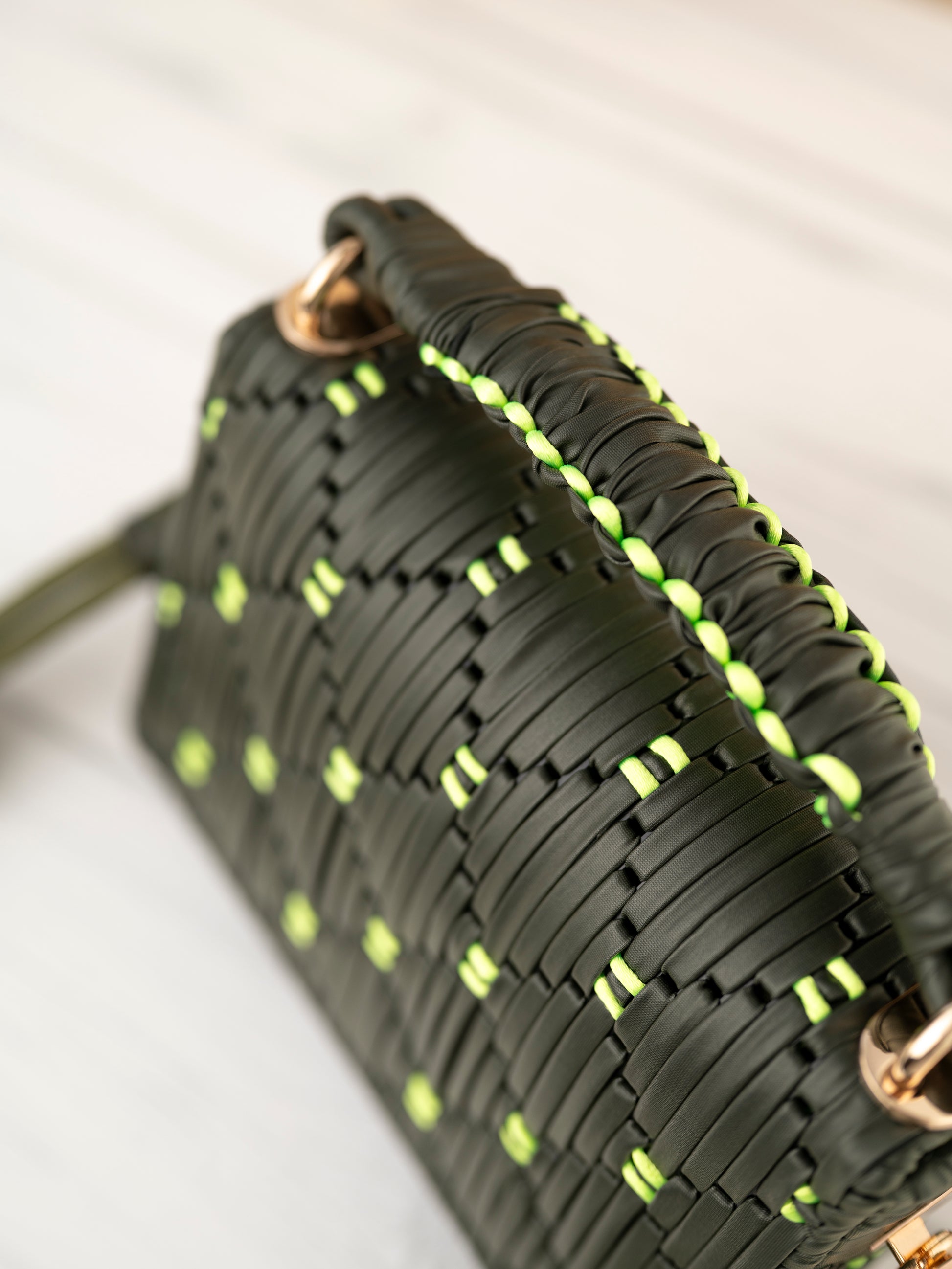 The LONDON bag in olive and lime is perfect for bold ladies who want to stand out. Its unique yarn design paired with a matching paracord strap brings a trendy, edgy vibe ideal for special events, nights out, or completing your cool influencer look with ease.